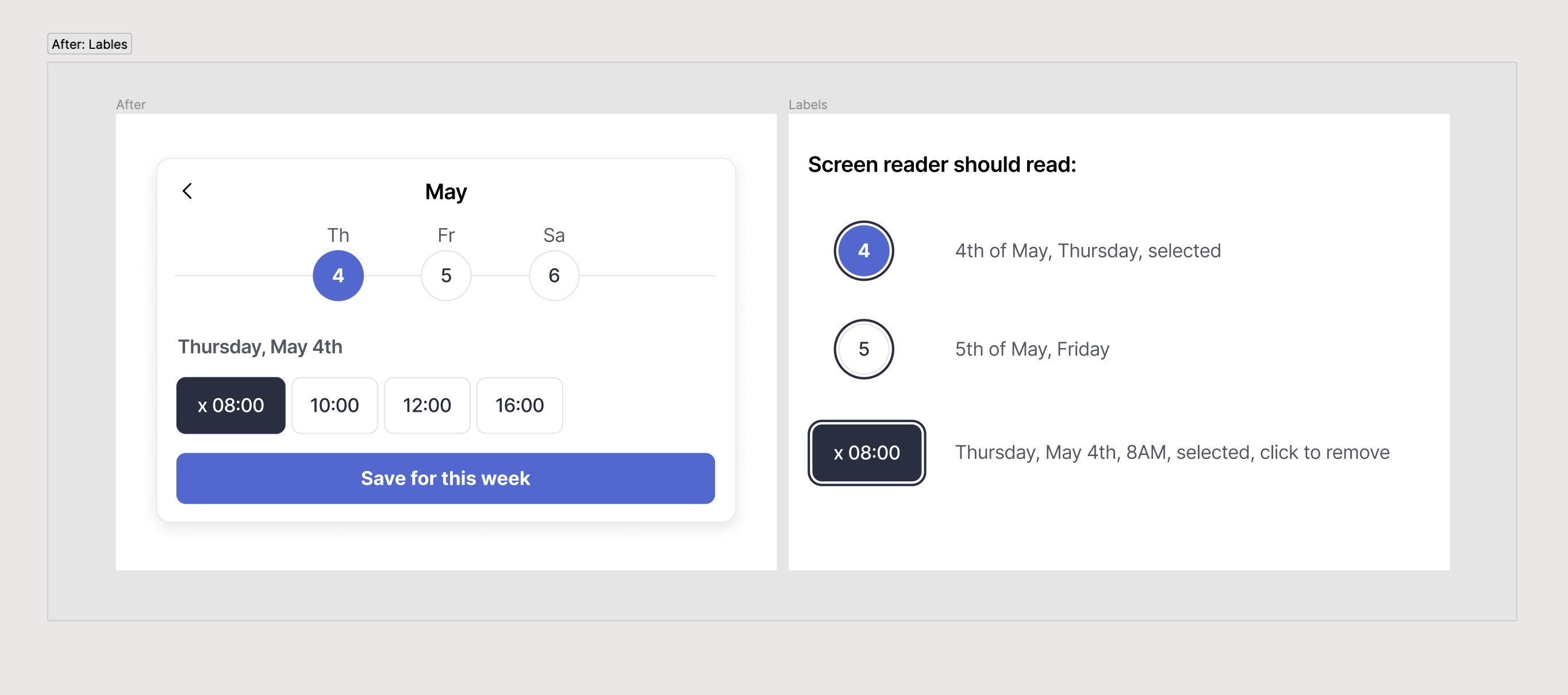 In about an hour or so, we’ve managed to identify some key issues and build a more accessible component without breaking the core UI or changing anything fundamentally.