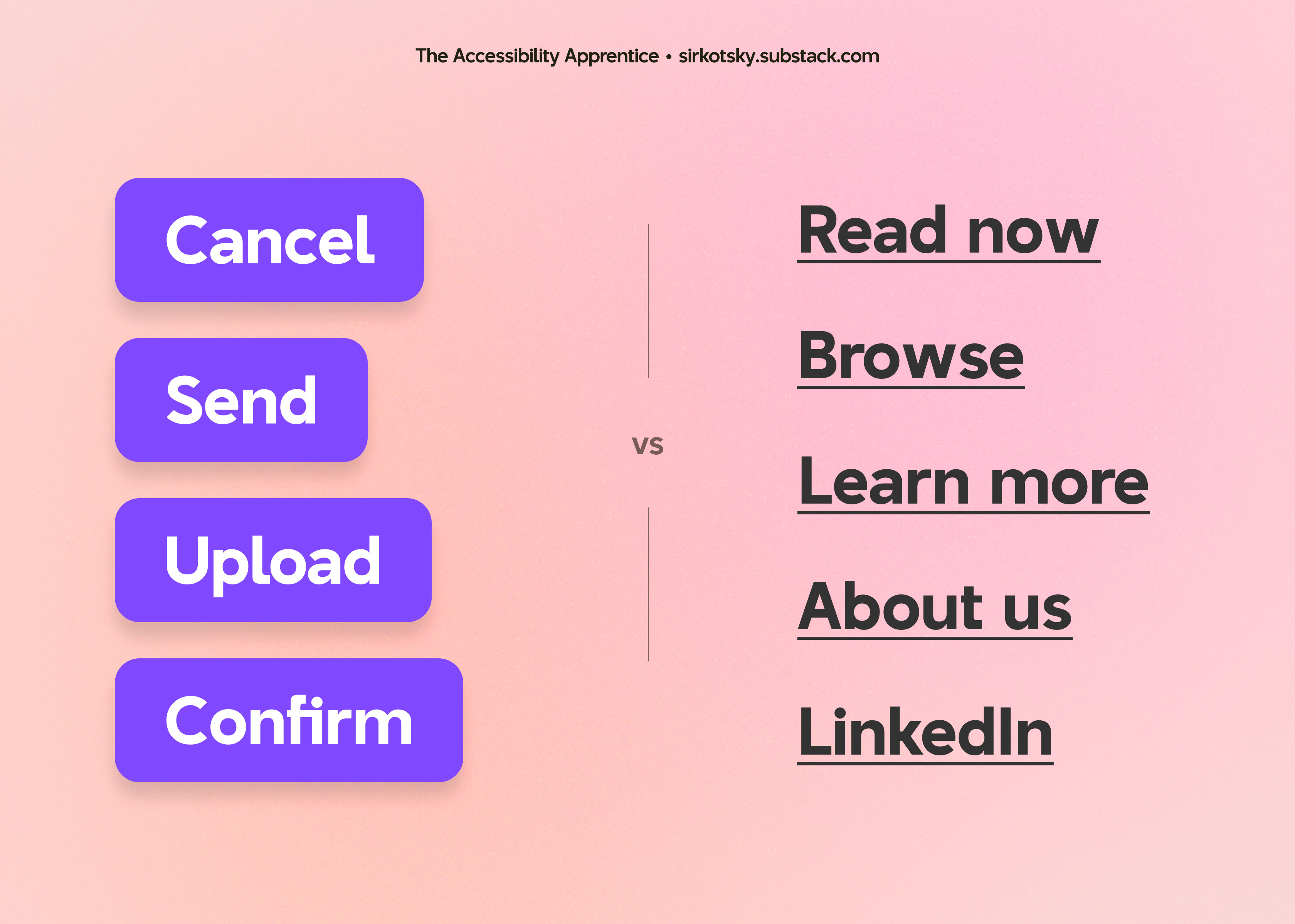 In this short issue of “The Accessibility Apprentice”, we will learn the difference between buttons and links, and why designers should care.