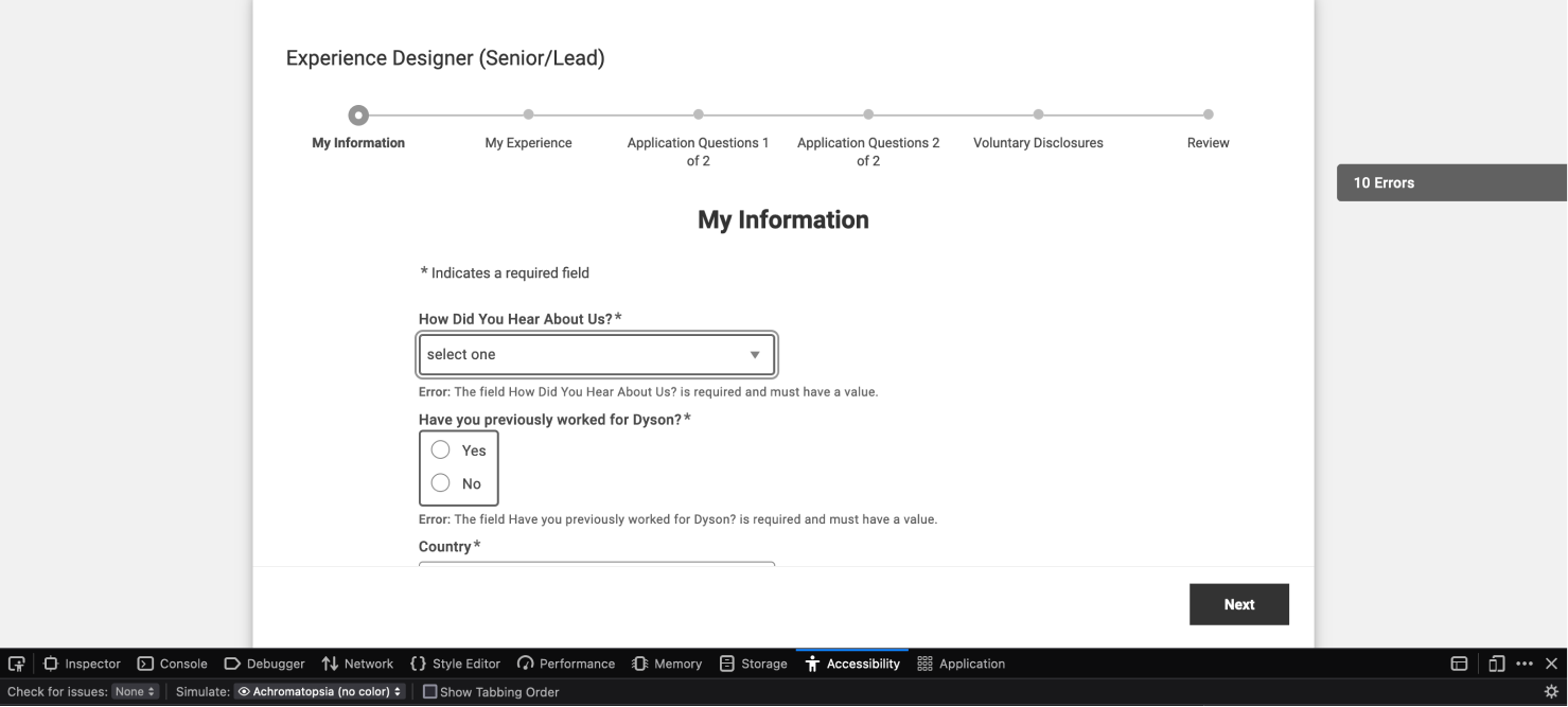 Test your form by completing it using your keyboard, and try different scenarios to identify potential challenges. How does your form react to a failed file upload? How hard is it to find a desired response in a dropdown using arrow keys? What happens if the user wants to go a step back and edit their response?