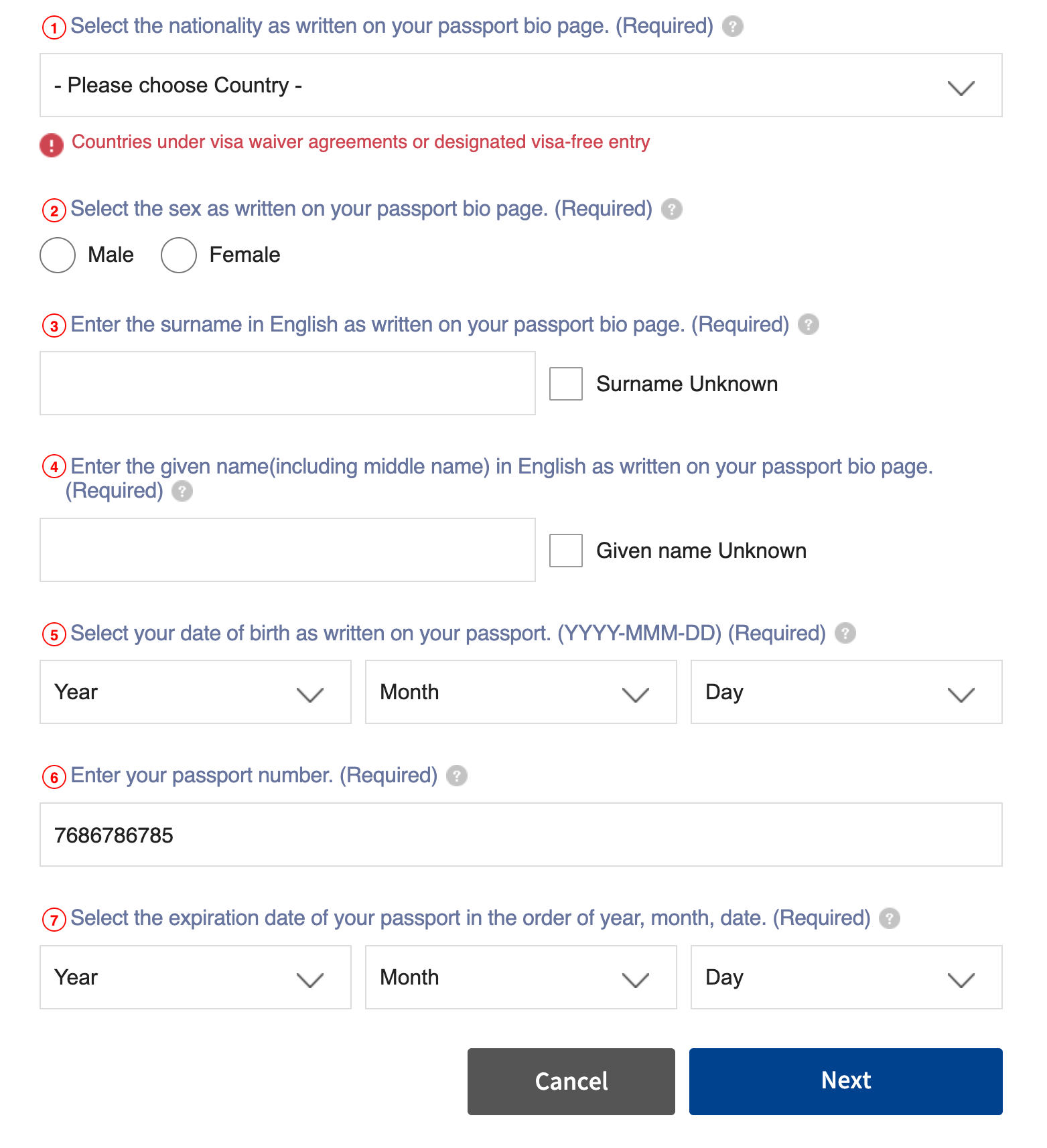 There are multiple ways to solve it. You could ask your engineers to hide the asterisk from the screen reader users, provide an alternative label for it, or even include the word “required” in the label, like Korea’s immigration authority does on their e-visa website.